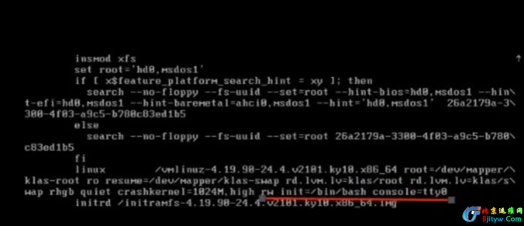 正文 银河麒麟高级服务器操作系统V10忘记root密码重置操作指南 阿国运维 V作者 /2024-08-18 22:13:07/2.05 K阅读 0818 此篇文章发布距今已超过483天,您需要注意文章的内容或图片是否可用! 阿国运维网技术分享平台:桌面运维、网络运维、系统运维、服务器运维(及云服务器),精品软件分享、阿国网络、尽在北京运维网一、在开机启动到了这个grub界面,先按字母"e"。二、进入到这个界面后,在以“linux”开头那一行末尾加上“rw init=/bin/bash console=tty0”,然后按Ctrl+x键进入到下一个界面。三、进入到这个界面后,输入passwd 用户名,然后输入密码;四、最后输入reboot -f重启。 北京IT运维网,文章内容没有标注一律为网上收集而来非原创作者,如有影响需要删除请联系我们,我们第一时间删除。客服微信:Bjywkf -- 展开阅读全文 --