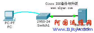 1、按拓扑图连接设备。这次选用2950交换机作为思科IOS承载体,因为路由器的接口配置已经很容易了,这次顺便练习一下交换机的IP地址配置。服务器还是TFTP服务器,现实环境下只需要在PC上安装一个tftpd软件即可。